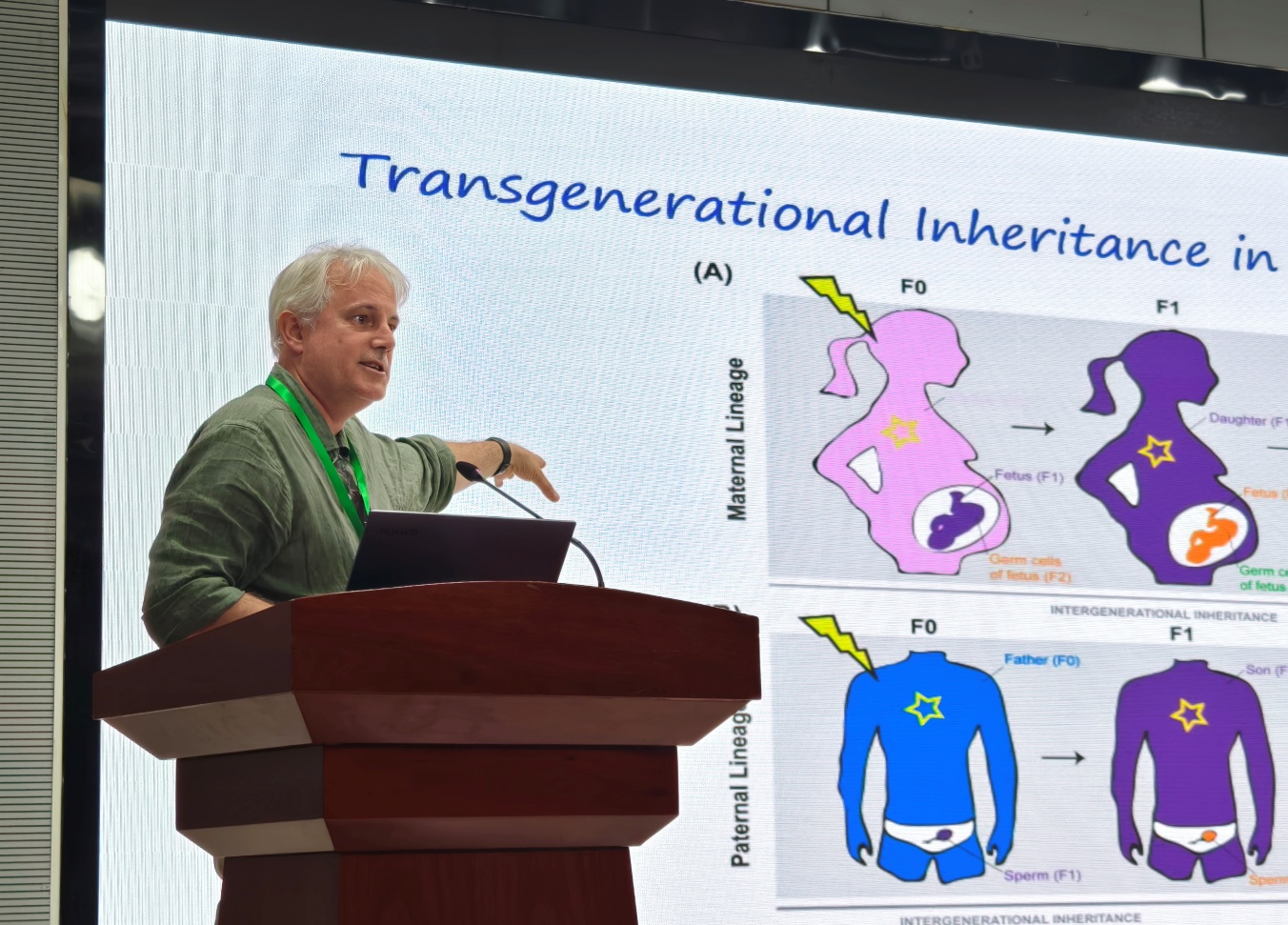 随后,James M. Flanagan教授发表了题目为“Your Epigenome Tells a Story”的精彩演讲。作为表观基因组学领域的杰出专家,James M. Flanagan教授长期从事癌症生物学研究,致力于探索表观基因组在疾病发生和发展中的作用。他从故事的角度讲述了人类从生命的起点走到终点的旅程,细致观察了表观基因组在人生各个阶段所经历的变化,详细介绍了表观基因组学在癌症诊断、治疗和预防中的应用,强调早期检测和个性化治疗的重要性。他还分享了在表观基因组学研究中的最新发现,鼓励学生们关注这一前沿领域,为人类健康事业贡献力量。
