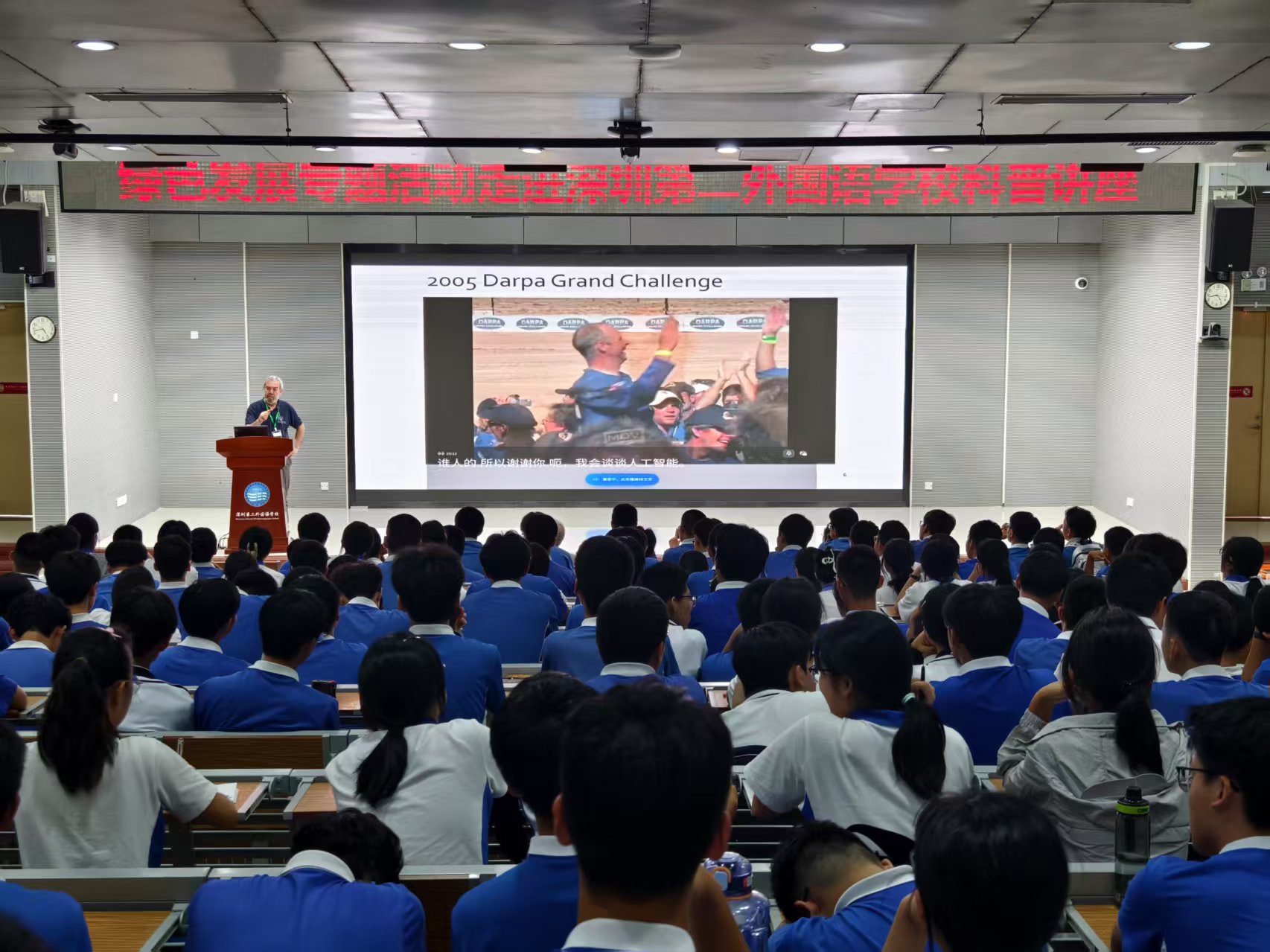 为深入贯彻落实《全民科学素质行动计划纲要》,向青少年普及现代科学技术前沿知识,广泛传播科学知识、科学思想、科学方法和科学精神,提高广大青少年科学素质水平,深圳国际人才交流中心联合深圳第二外国语学校,于2025年6月30日下午举办“绿色发展专题活动·走进深圳第二外国语学校科普讲座”,邀请葡萄牙波尔图大学经济学院教Jo?o Gama,英国伦敦帝国理工学院教授、MRes癌症生物学主任James M. Flanagan到校演讲,让300多名在校师生近距离感受科学技术的魅力,激发对科学研究的热情。